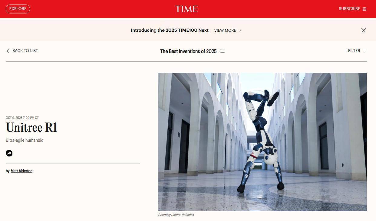 先跟大伙唠唠最让小雷感兴味的机器东说念主限制。宇树科技的 R1 东说念主形机器东说念主果真上《时期》榜单了。