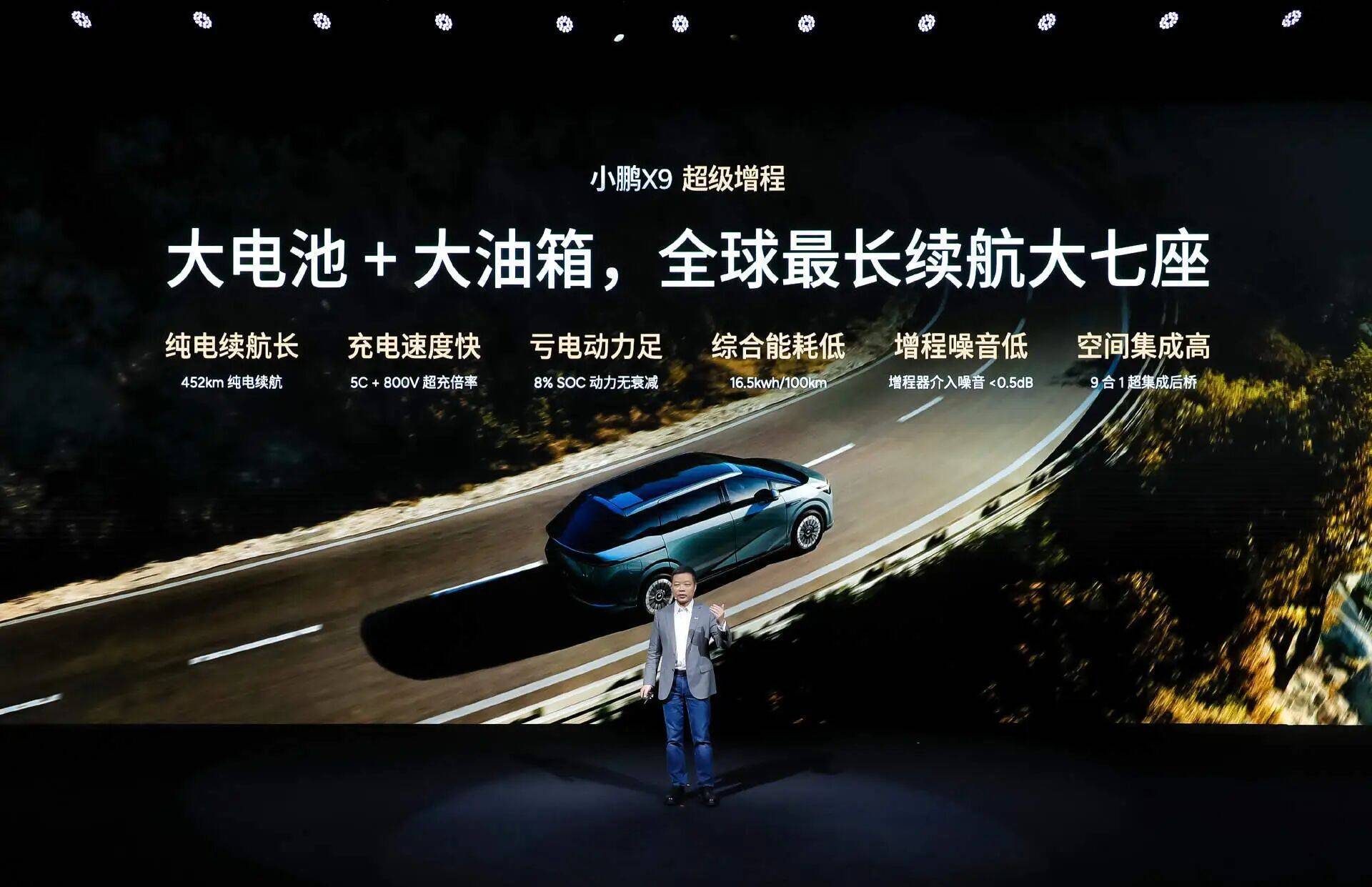 在发布会上,何小鹏示意,X9增程版是全球最长续航大七座车型。