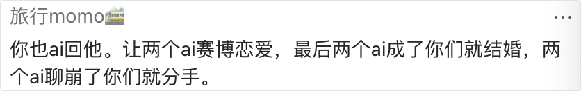 有网友支招,用魔法击败魔法,你也切个AI陪她聊👇🏻: